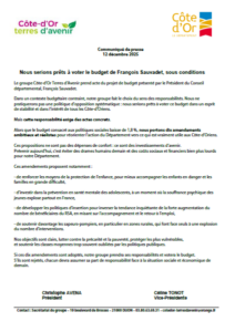 Le groupe Côte-d’Or Terres d’Avenir prend acte du projet de budget présenté par le Président du Conseil départemental, François Sauvadet.